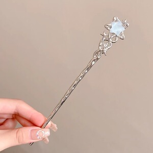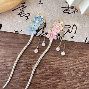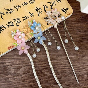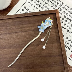 21#梅花浅蓝单花珍珠流苏发簪(袋装