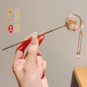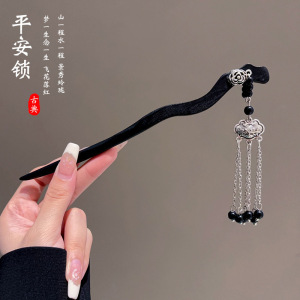 新中式汉服发钗古风步摇流苏盘发簪子女头饰复古花朵后脑勺发簪