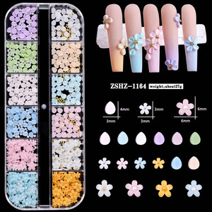 新款五瓣花美甲饰品树脂diy马卡龙色系仿雕花瓣小钢珠指甲配件