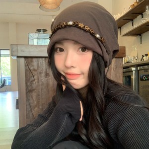 波西米亚民族风复古串珠包头帽女宽松慵懒风百搭显脸小堆堆帽子潮