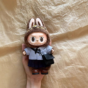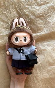 拉布布labubu搪胶【泰式校服】娃衣一二三代17cm站立背带裤套装