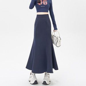 2025早秋黑色包臀半身裙高腰荷叶边西装长裙后开叉鱼尾裙女A6392