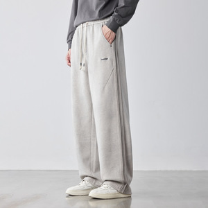 WOOG2005灰色松紧腰阔腿休闲裤男2025春秋季新款宽松直筒运动卫裤