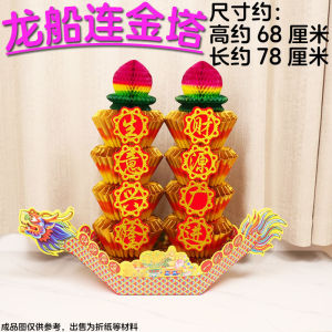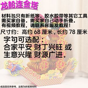 中秋折塔套装装饰品材料包 一帆风顺龙船 五彩折纸折叠招财聚宝盆