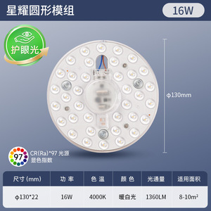 升级Ra97自然光【16W】白光 直径130MM★适用8-10平其它