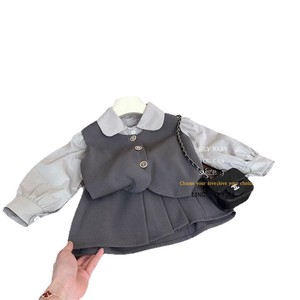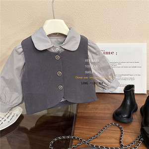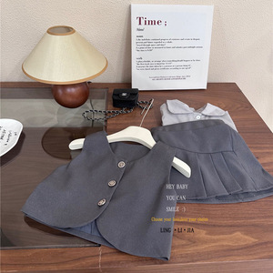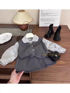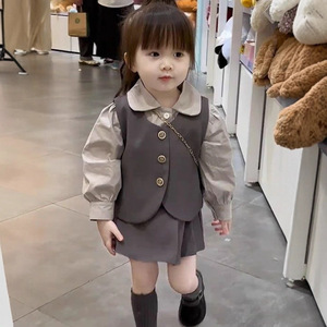 韩版童装春秋季新款女童洋气高级学院风马甲套装儿童时尚三件套潮