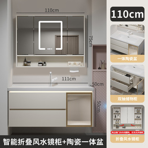 110CM—智能折叠风水镜柜【镜柜不带氛围灯 需加80元】【不含龙头配件】