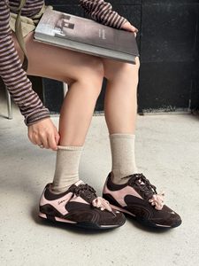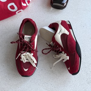 2025秋季新款真皮厚底红色德训鞋女百搭系带软底休闲运动阿甘鞋