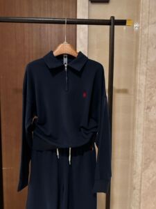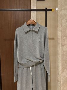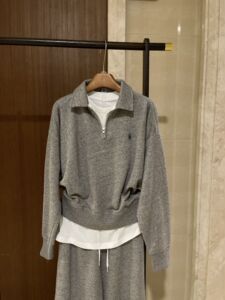 南油秋冬新款拉夫小马标长袖polo领半拉链宽松美式复古灰色卫衣女