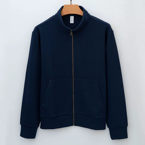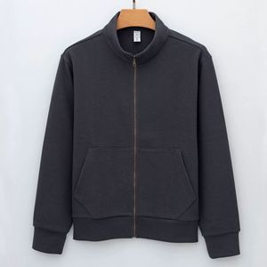 严选高端美式高街廓形纯色百搭拉链开衫立领宽松卫衣外套男式夹克