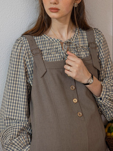 Dailyart“少女心事”法式松弛风琴褶灯笼袖长绒棉格子简约衬衫