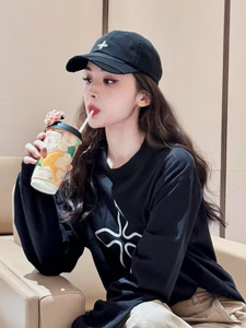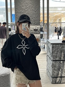 娜扎同款 SM黑玉兰长袖T恤oversize版型男女同款