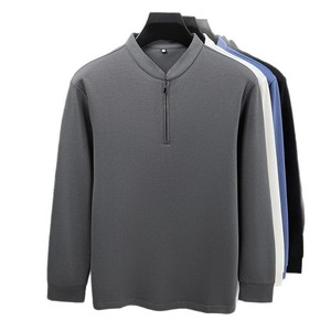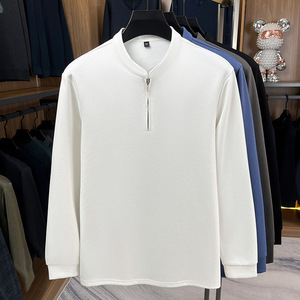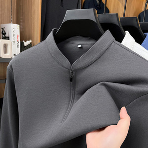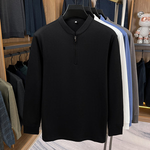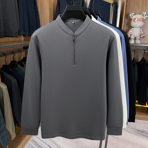 秋季拉链纯色长袖卫衣男秋中年时尚休闲纯色百搭立领长袖男士t恤
