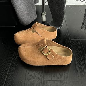 厚底内增高勃肯鞋包头半拖鞋女外穿2025新款秋夏季一脚蹬博肯单鞋