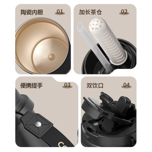 保温杯陶瓷内胆新中式水杯新款女高颜值吸管车载双饮咖啡杯子学生