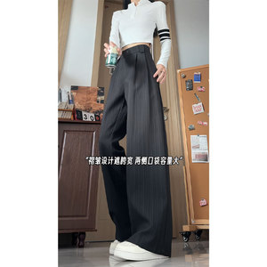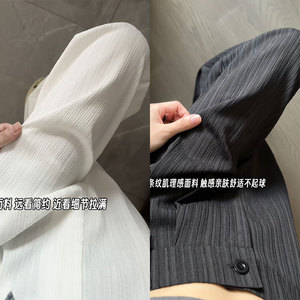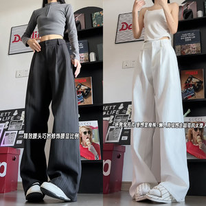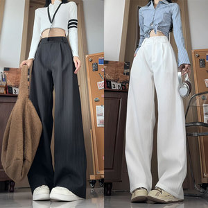 早秋肌理感垂感休闲裤子直筒宽松显瘦大码小个子白色感小西裤