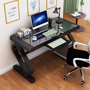 电脑桌台式家用卧室学生学习书桌简约钢化玻璃办公写字桌子经济型
