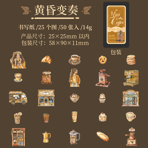 番茄酱少女盒装贴纸 迷你咖啡系列 微缩场景复古造景无白边50张入