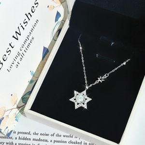 原创S925纯银六芒星项链女气质轻奢日常穿搭配饰莫桑钻一克拉颈链