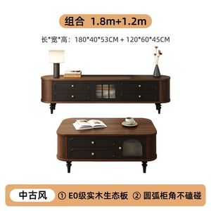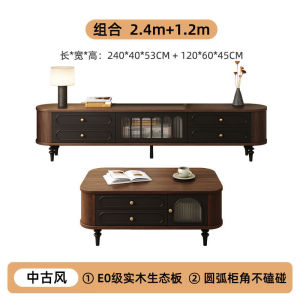 法式电视柜复古中古风实木电视机柜茶几组合客厅家用2025新款美式