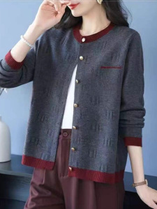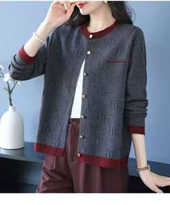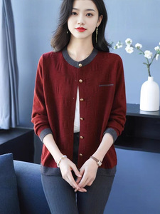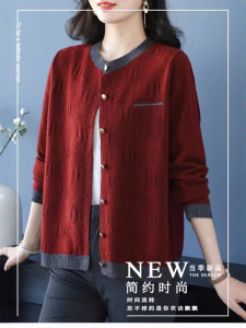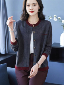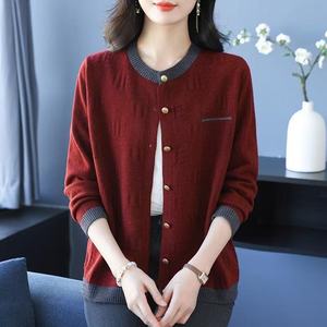 妈妈春秋新款圆领开衫时尚减龄宽松针织外套女薄款羊毛衫外搭披肩