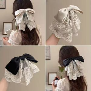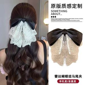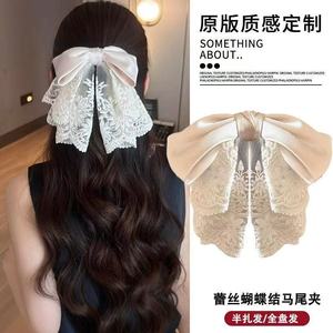 多层刺绣网纱蝴蝶结抓夹质感缎面织带甜美发夹轻奢显发量马尾夹女