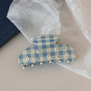 花朵点钻醋酸小清新格子抓夹气质盘发时尚鲨鱼夹百搭发夹发饰新款