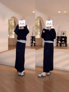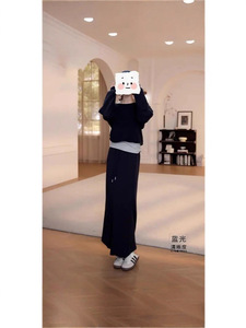 早秋时尚宽松韩系休闲慵懒风百搭假两件背心卫衣高腰半身裙两件套