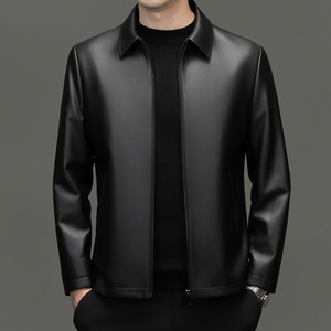 高档真皮皮衣男绵羊皮新款短款机车皮夹克中年翻领商务皮衣外套男