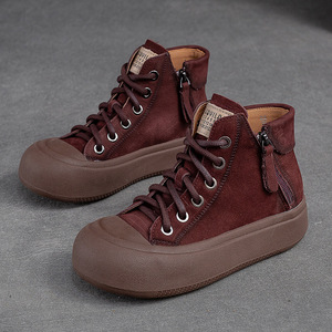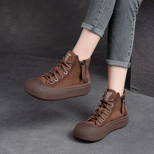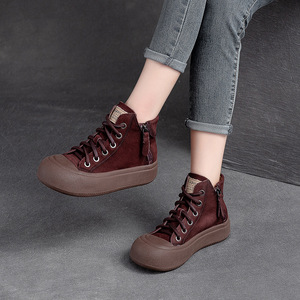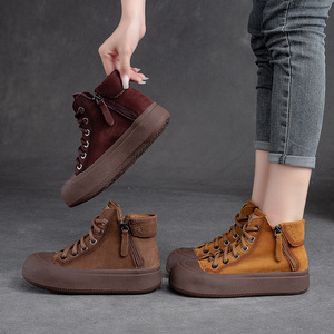 杰骤2025秋季新款圆头侧拉链帆布高帮女单鞋休闲时尚百搭简约纯色
