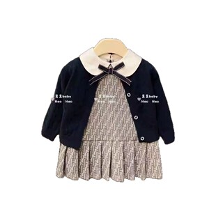 英伦学院风!女童秋季套装针织开衫娃娃领背心裙两件套31091