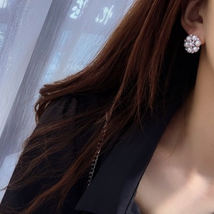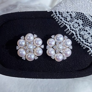 精工S925纯银高亮天然淡水珍珠花团多珠雪花耳钉气质百搭耳环耳饰