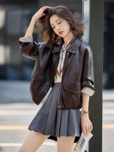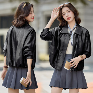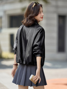 皮衣外套女短款2025秋新款宽松时尚百搭洋气皮夹克配丝巾 BL2509