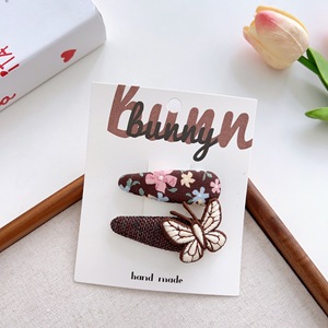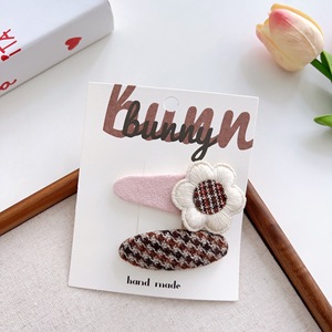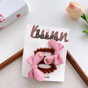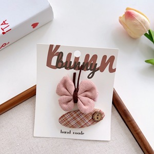 儿童粉咖色蝴蝶结花朵发夹甜美女童格纹碎发BB夹刘海边夹发卡发饰