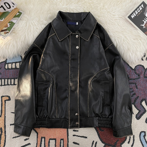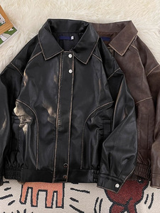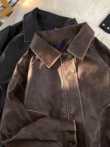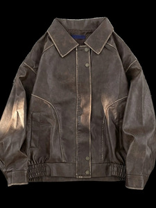 美式复古做旧皮衣外套男款街头痞帅高级感机车服美拉德棕色皮夹克