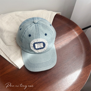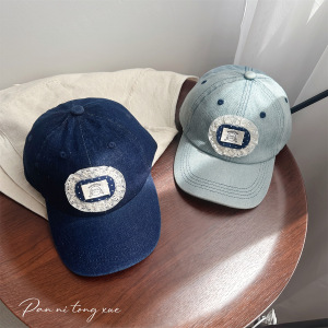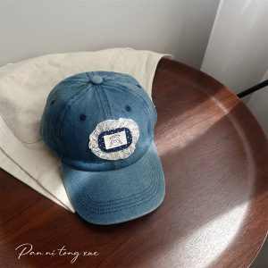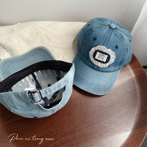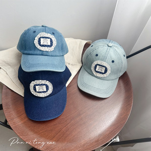 韩版儿童牛仔棒球帽蕾丝布标洋气宝宝防晒穿搭凹造甜美鸭舌帽子