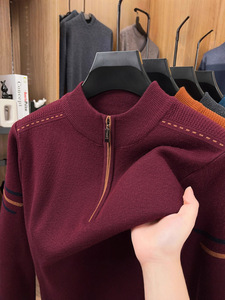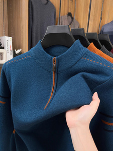 外贸批发冬季男士半高领拉链加厚保暖毛衣中年爸爸装打底针织毛衫