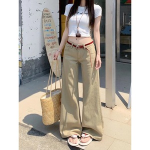 【韩牛】2025秋季新款复古低腰辣妹穿搭卡其色不贴腿微喇牛仔裤女