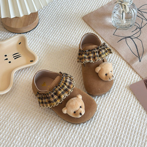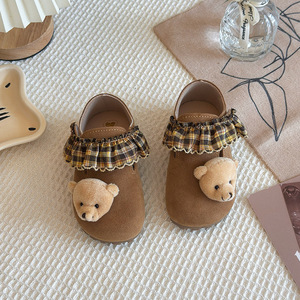 女童勃肯鞋2025秋季新款超可爱泰迪熊儿童软底小皮鞋女孩卡通单鞋