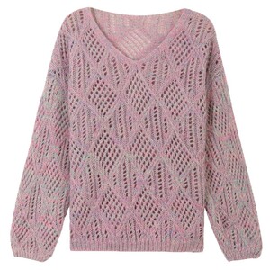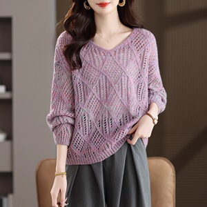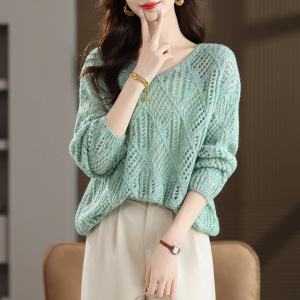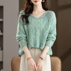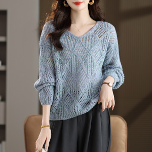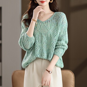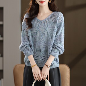 V领镂空针织衫女士短款长袖秋装2025新款秋冬打底衫上衣百搭毛衣