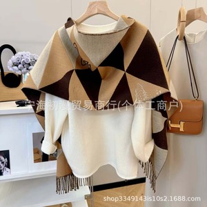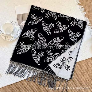 正确版本长土星仿羊绒围巾女西太后秋冬字母披肩加大保暖加厚黑灰
