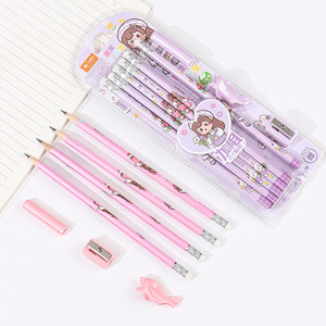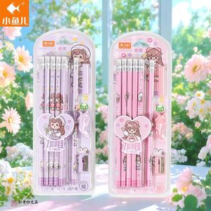 小鱼儿儿童卡通铅笔带橡皮擦头圆杆六角2B小学生大头写字儿童塑料