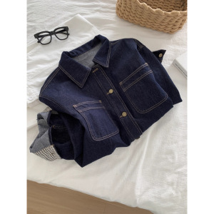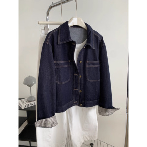 广州十三行高货~牛仔外套女宽松韩版小个子翻领短款上衣秋季