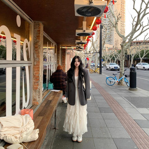 2025灰色西装外套女宽松慵懒风松弛感小众秋季新款垫肩西服潮流款