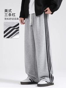 三条杠运动裤子男春秋款2025新款宽松垂感直筒裤男士秋季休闲长裤