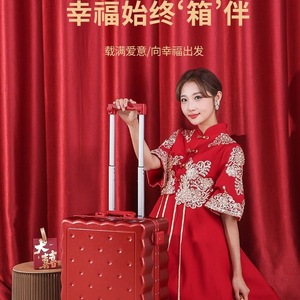 酒红色行李箱旅行结婚陪嫁一对喜箱行旅拉杆箱女款皮箱2025年新款