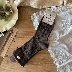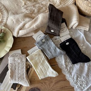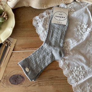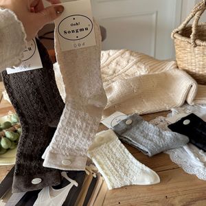松口澳棉中筒袜雪花贝母扣小精致堆堆~少女韩系复古风纯色抗菌袜