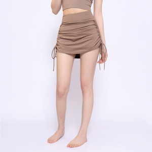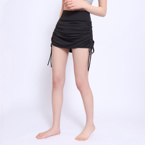 夏季假两件健身裙裤女弹力外穿瑜伽裤高腰提臀抽绳紧身运动短裤