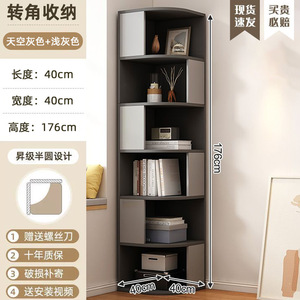 实木转角书架落地置物架墙角柜子客厅一体靠墙边柜拐角储物柜书柜