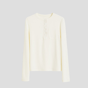 打底羊毛T恤2025秋季新款修身遮肚显瘦亨利领设计感长袖T恤上衣女